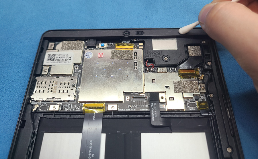 表示やタッチに異常が無かったので、貼付け前の準備としてフレームの清掃を行います。