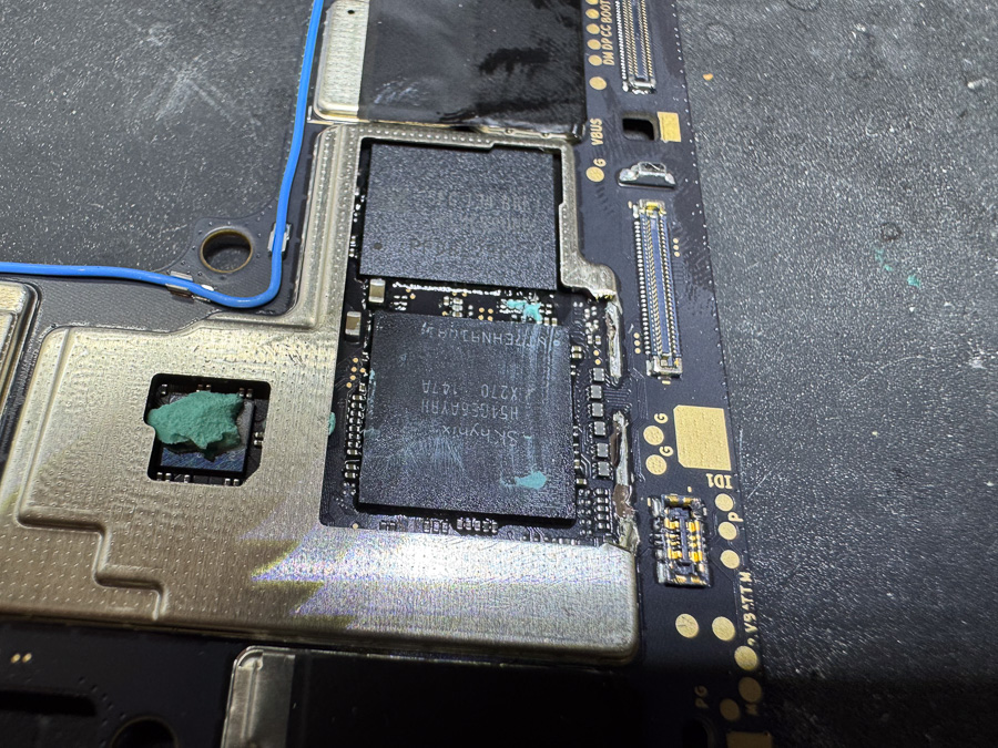 次にRAMチップも重ねて同様の作業を行ったら基板の補修は完了です。