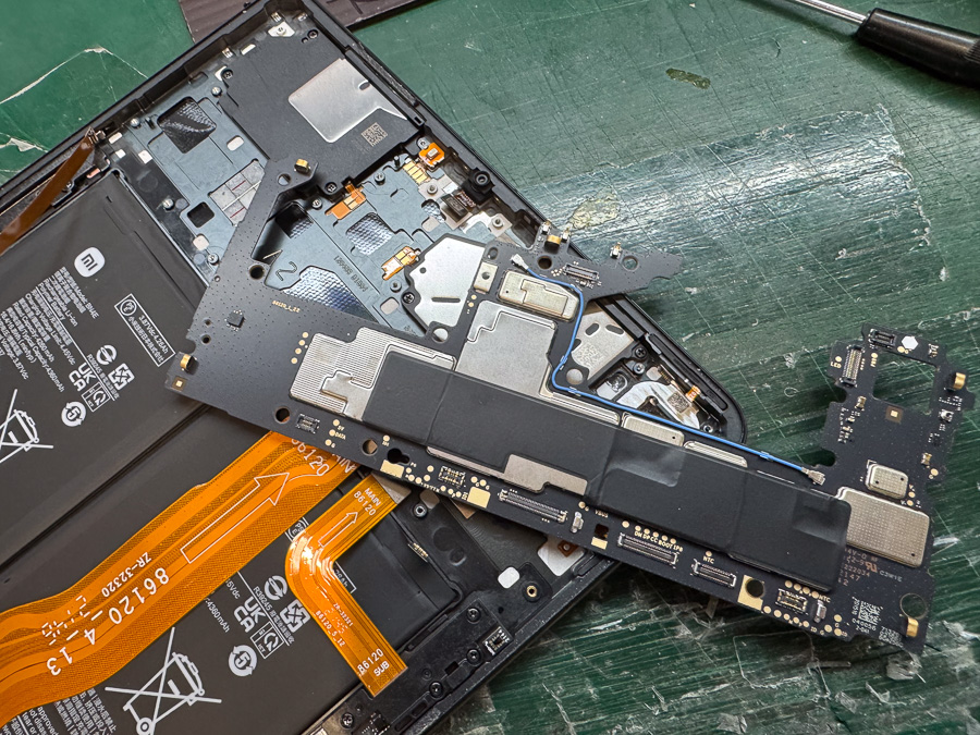 一般的に、特定のバッテリー残量で電源が落ちる症状はバッテリーの劣化を疑いますが、Xiaomi Pad 5によくみられる「再起動ループ」「電源が入らない」症状の場合は、メイン基板のCPUに原因があるケースがほとんどです。