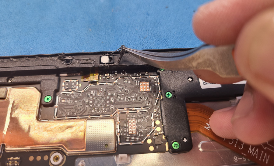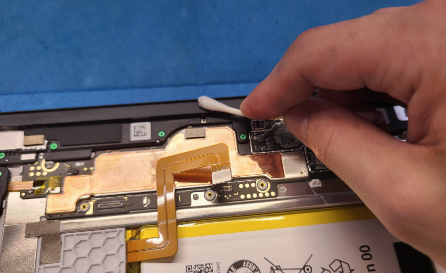 これをやっておかないと修理後に上からの圧に弱くなってしまい、画面もたわみやすくなるため忘れずに行っておきます。