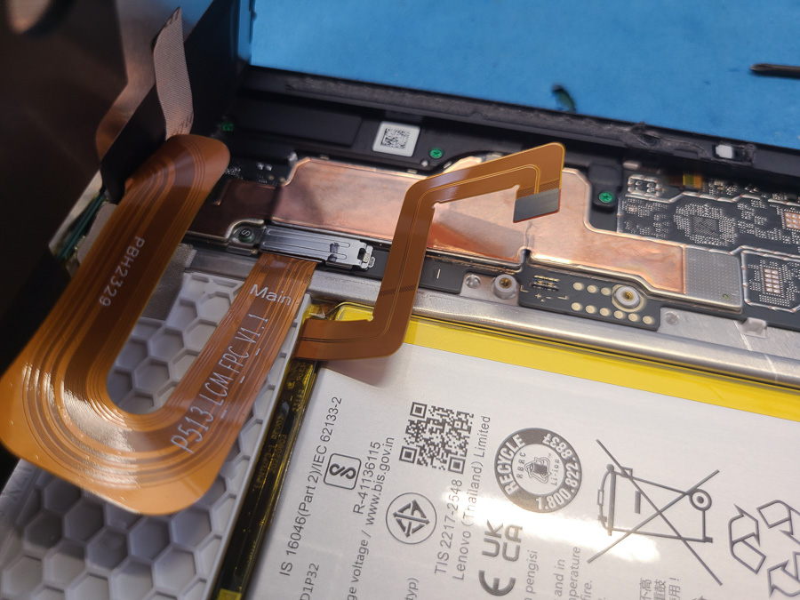 ディスプレイケーブルを基板に接続して金属の蓋をねじ止めします。