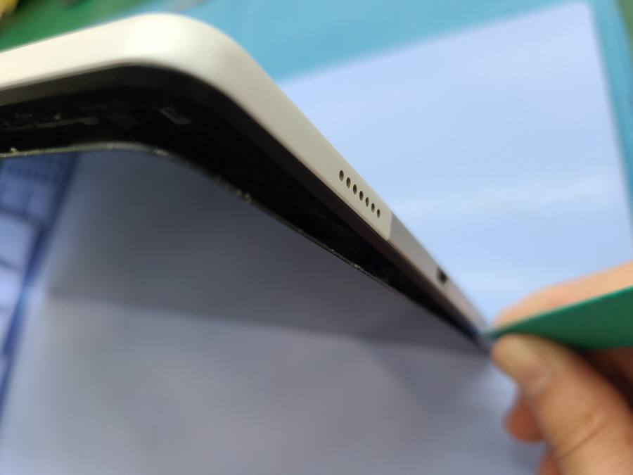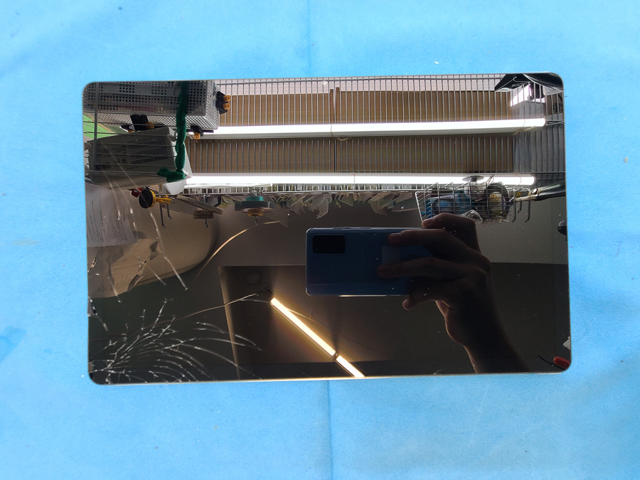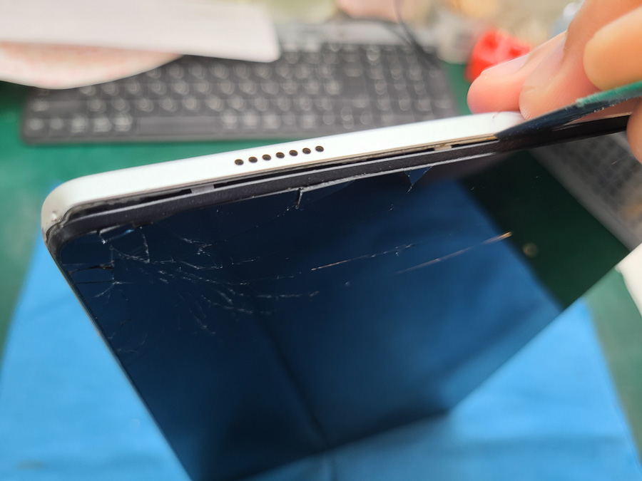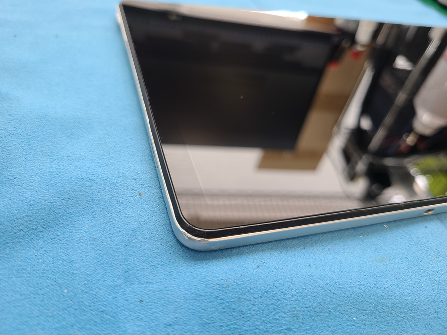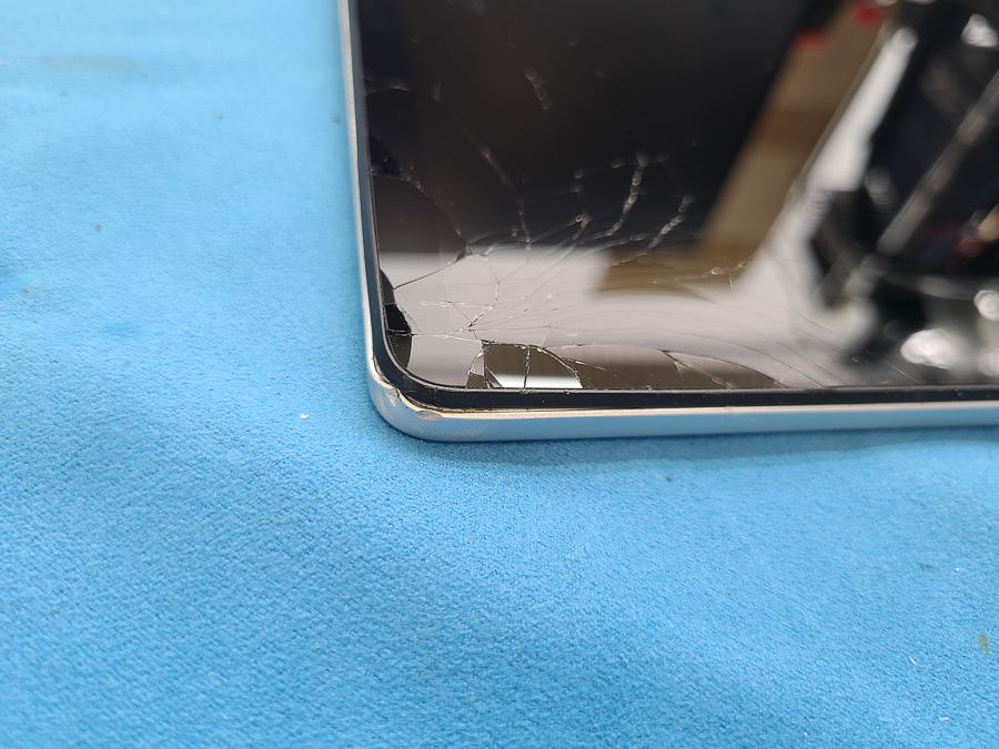 タブレットのような大型機種の場合、落下時の衝撃が強く伝わるため、画面の割れと同時にフレームの歪みを併発しているケースをよく拝見いたします。