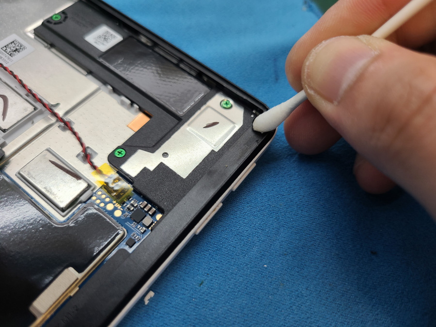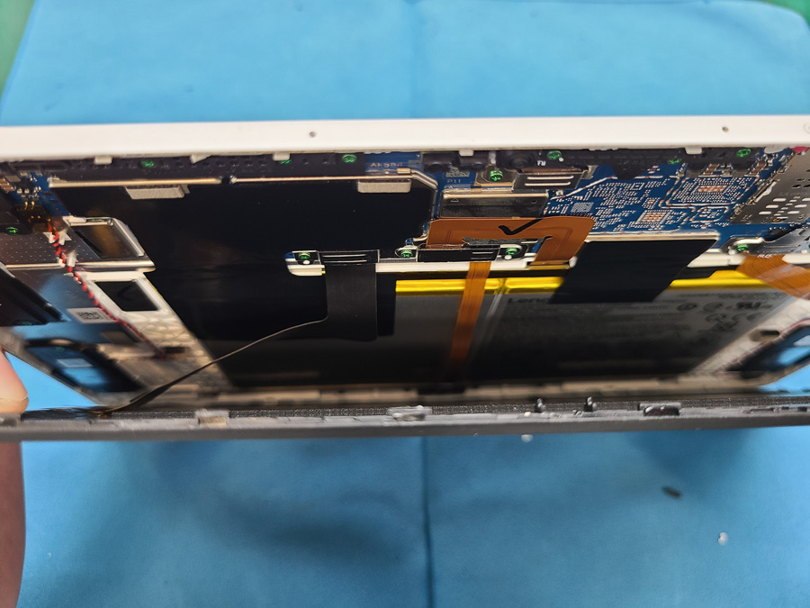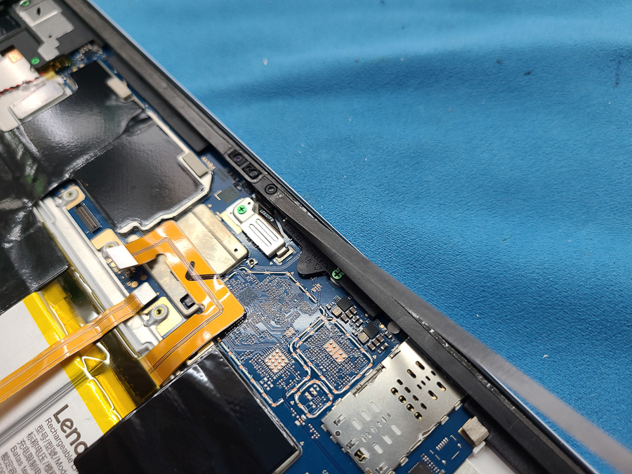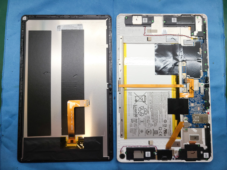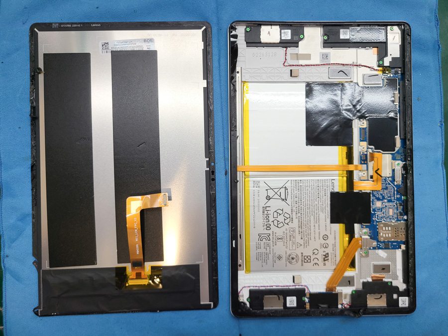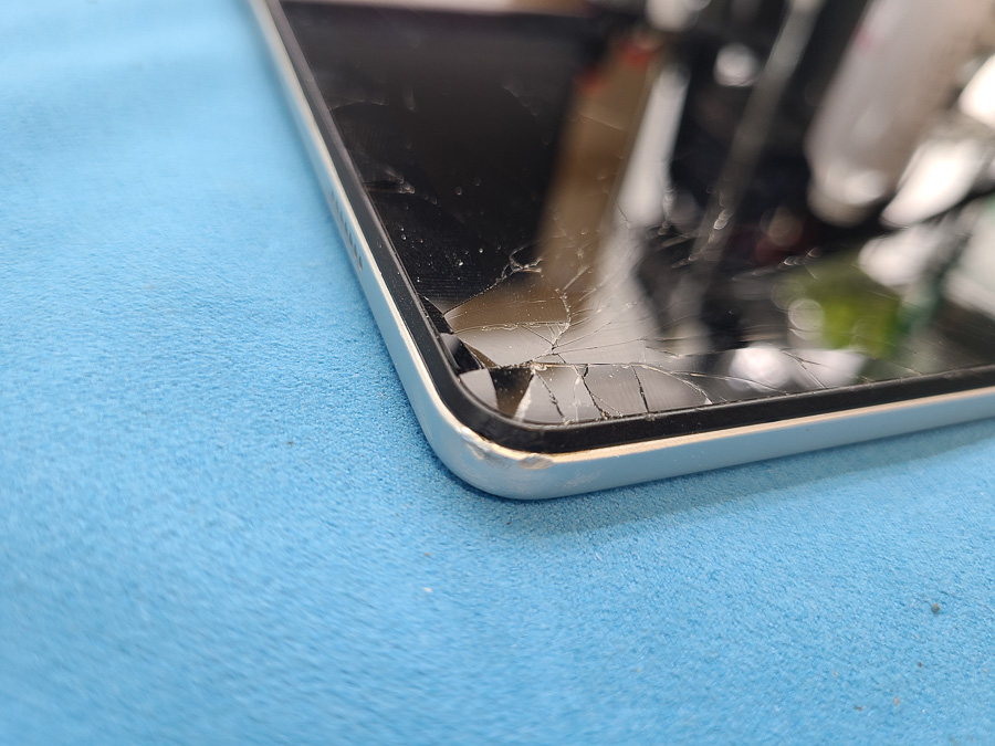 タブレットのような大型機種の場合、落下時の衝撃が強く伝わるため、画面の割れと同時にフレームの歪みを併発しているケースをよく拝見いたします。