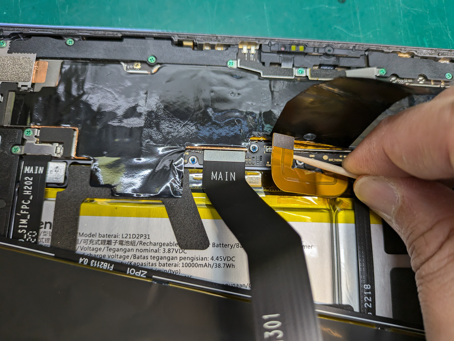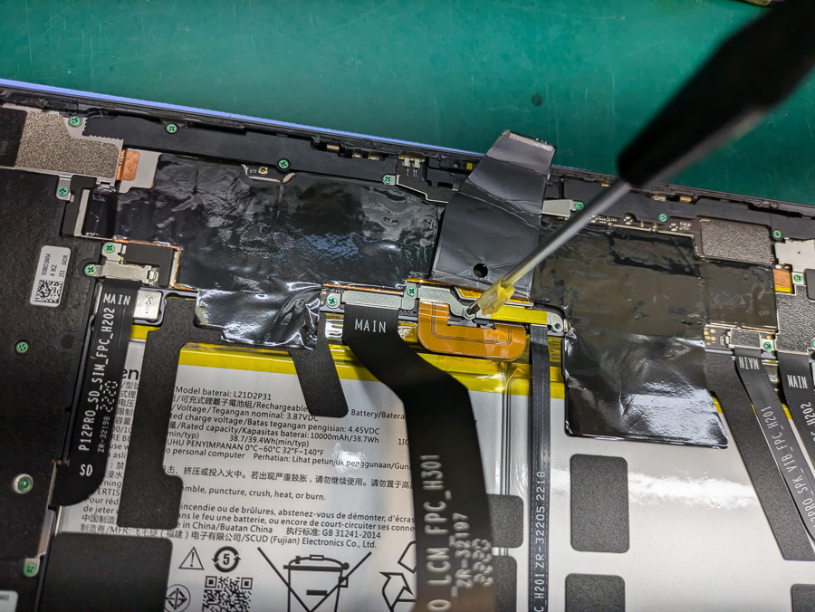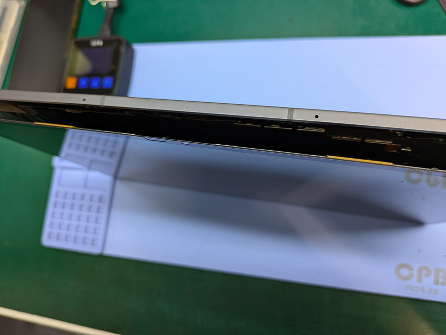 こちらは画面から分解を行う機種のため、まずは画面を剥がす必要があります。