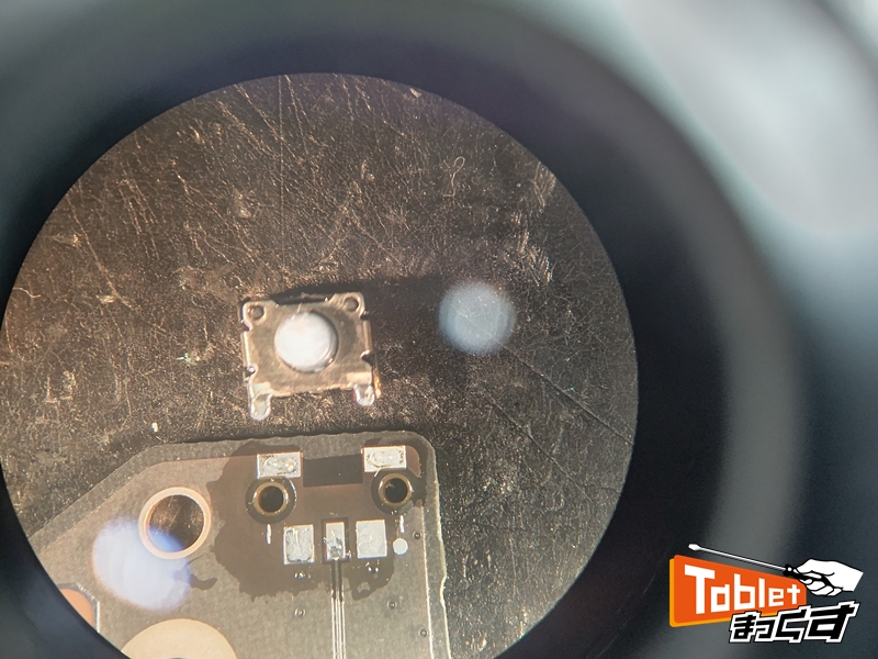 基板側が問題なかったため、新しいR1ボタンを用意して交換します。交換後はフラックスの清掃を入念にします。