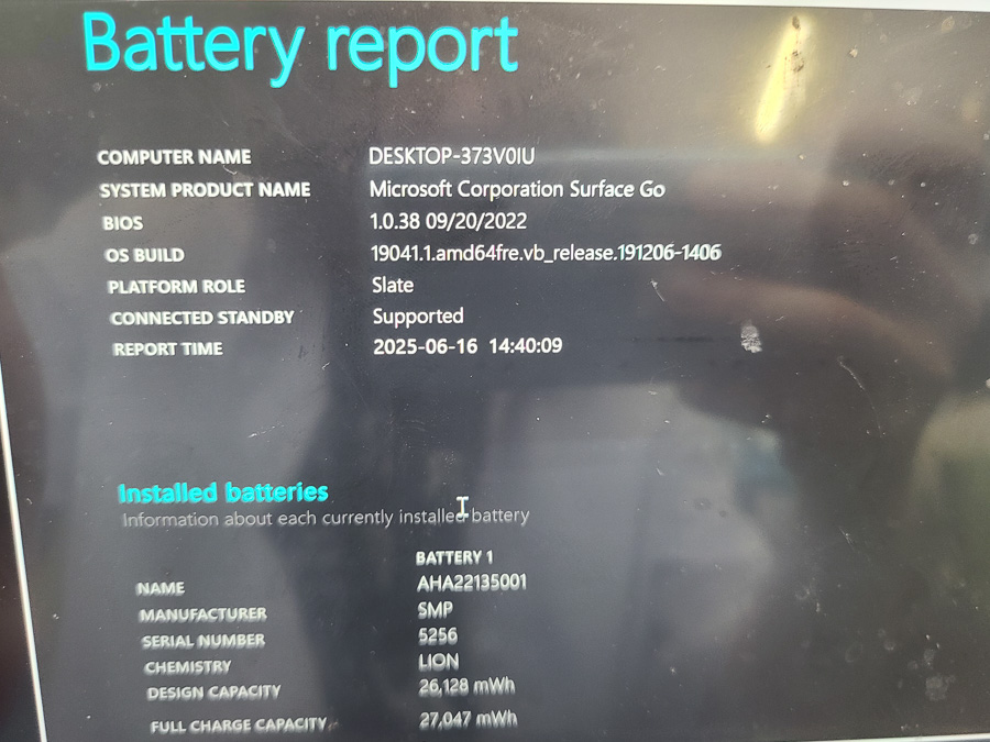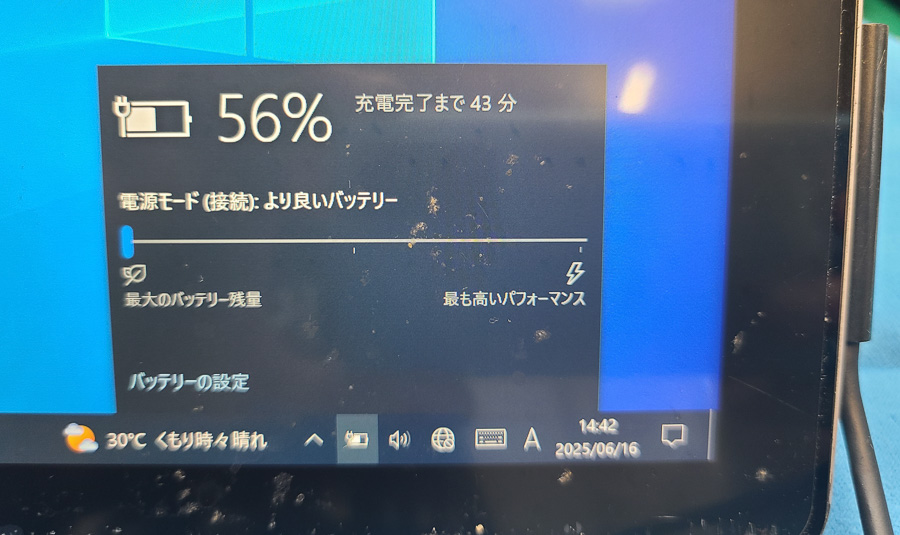 コマンドプロンプトからバッテリーレポートを出力して、フルチャージキャパシティーがしっかりと改善していることを確認します。充電の経過もある程度確認して問題がなければバッテリーを本体に組み付けます。