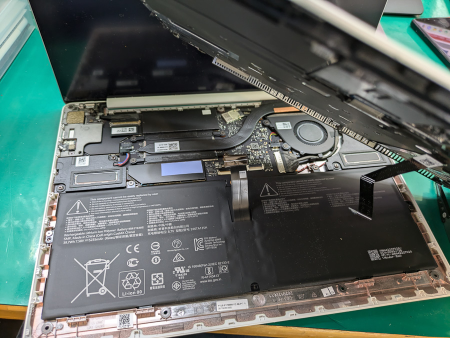 今回の「Surface Laptop Go」は分解工程も少なく、端末にとって負担の少ない修理となっております。