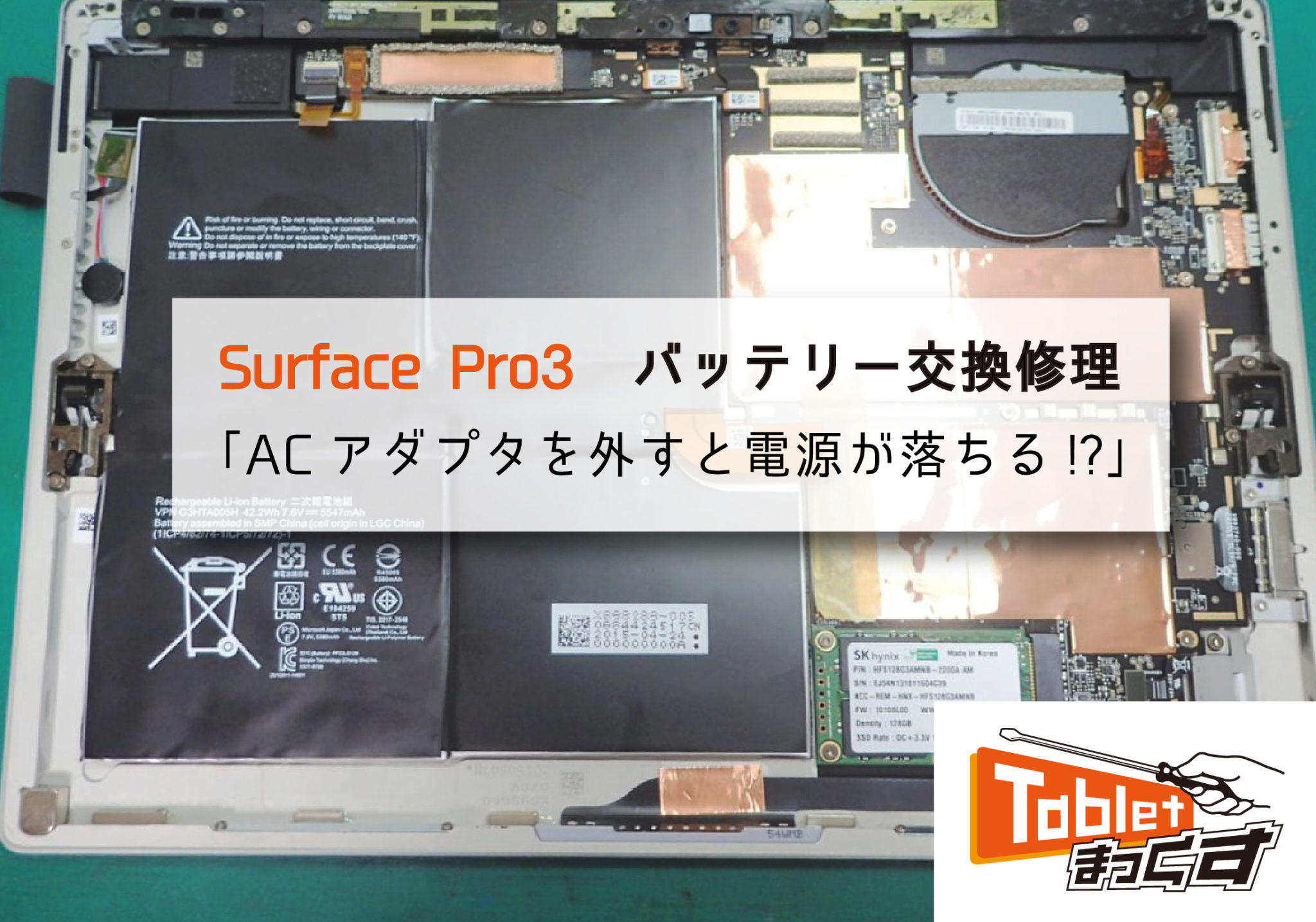 Surface Pro ACアダプタを外すと電源が落ちる!? バッテリー交換修理