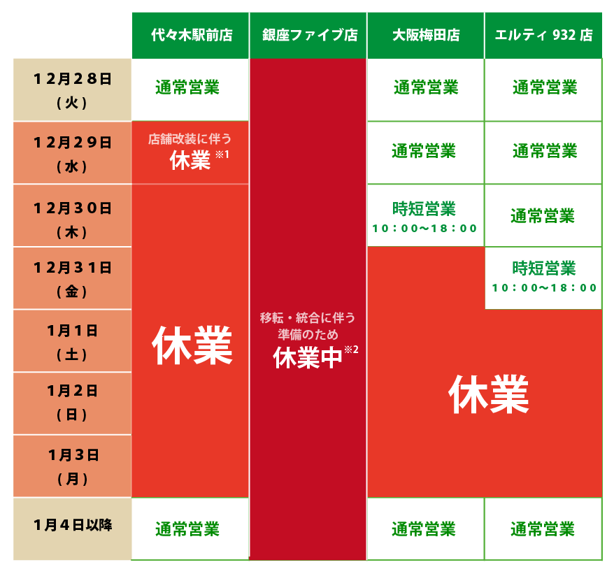 年末年始の営業日程のお知らせ